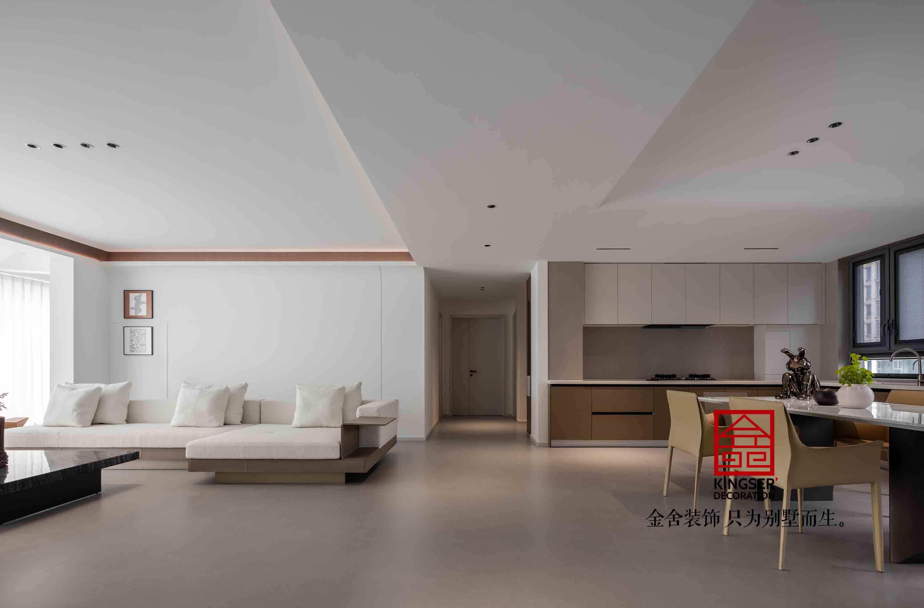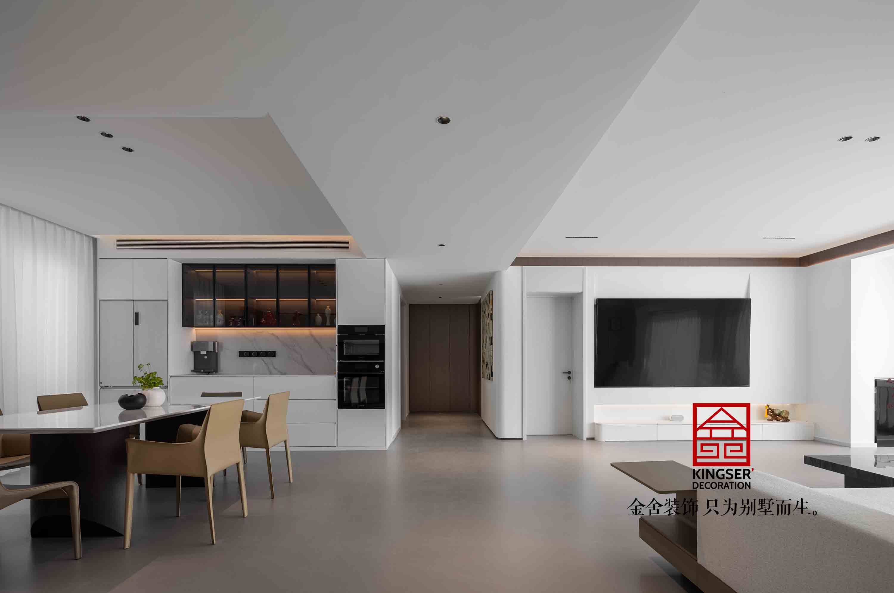 灯光设计:采用无主灯设计,以筒灯、射灯、灯带等多种形式结合,营造出柔和、均匀且富有层次感的照明效果,满足不同场景的使用需求。