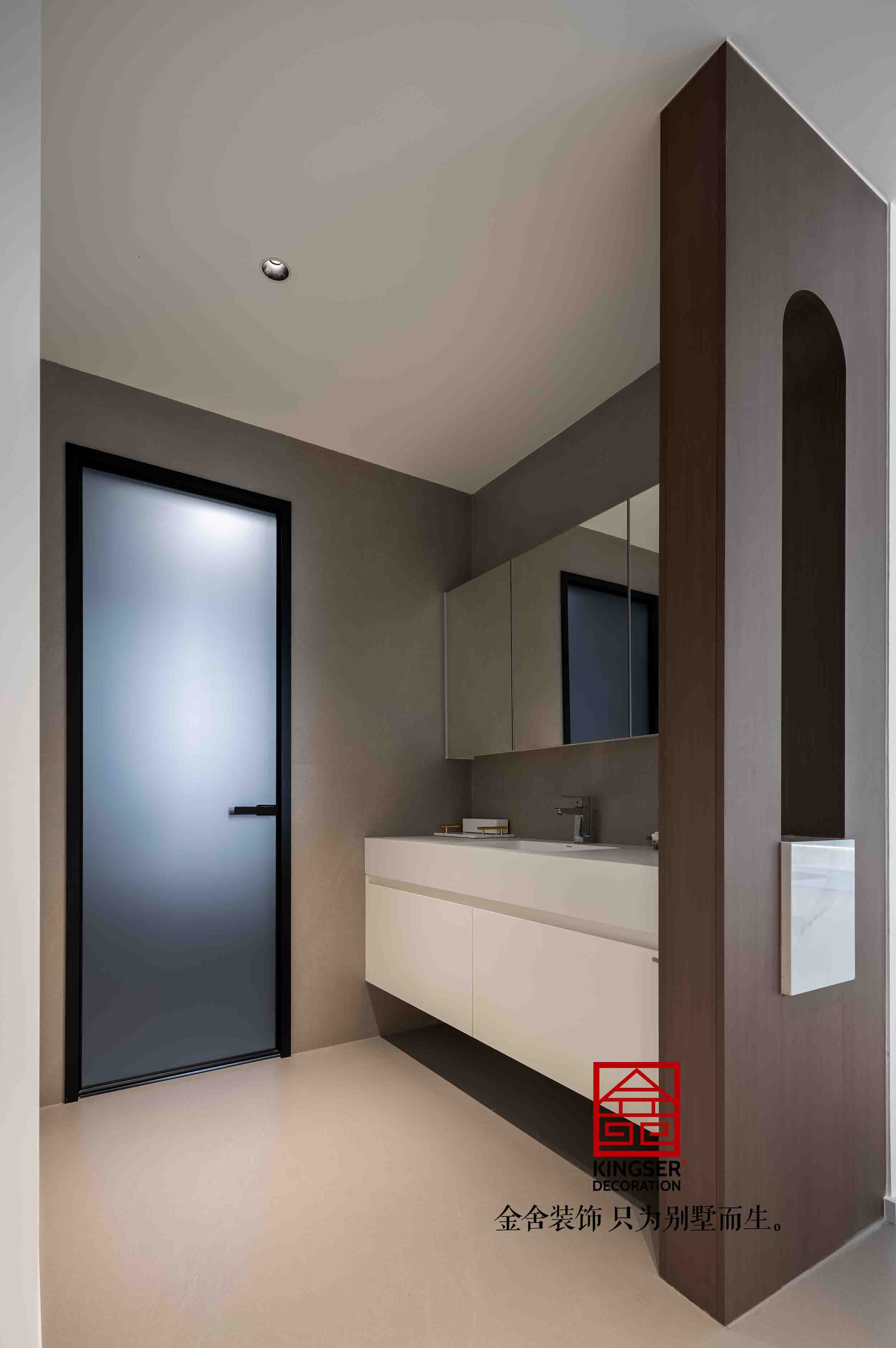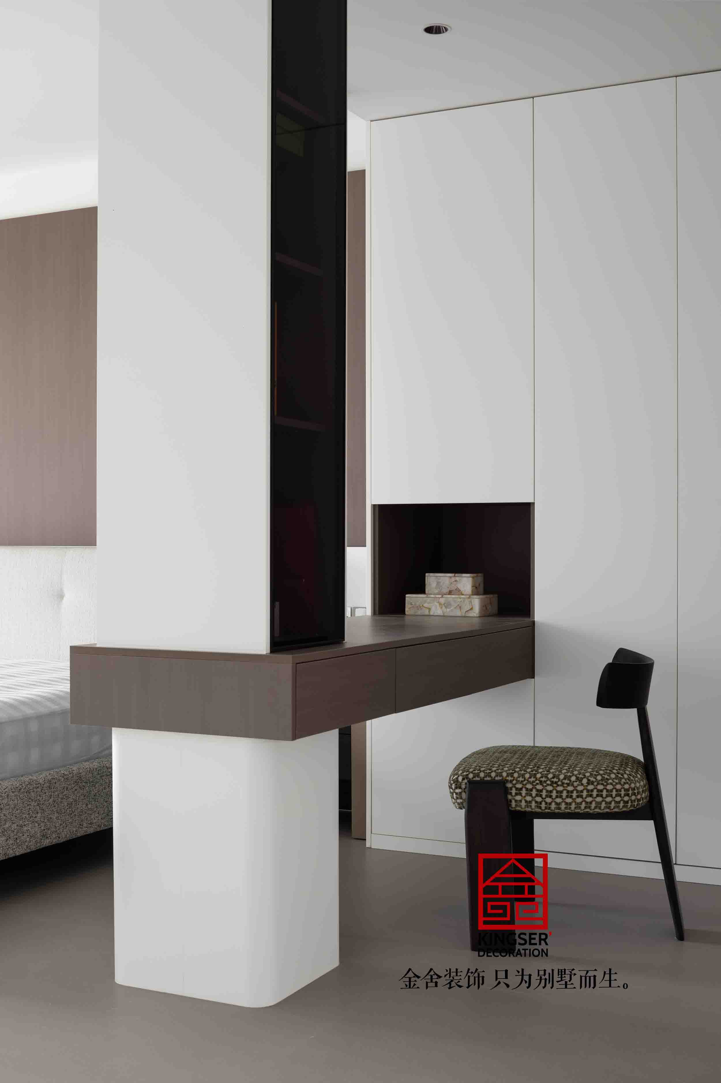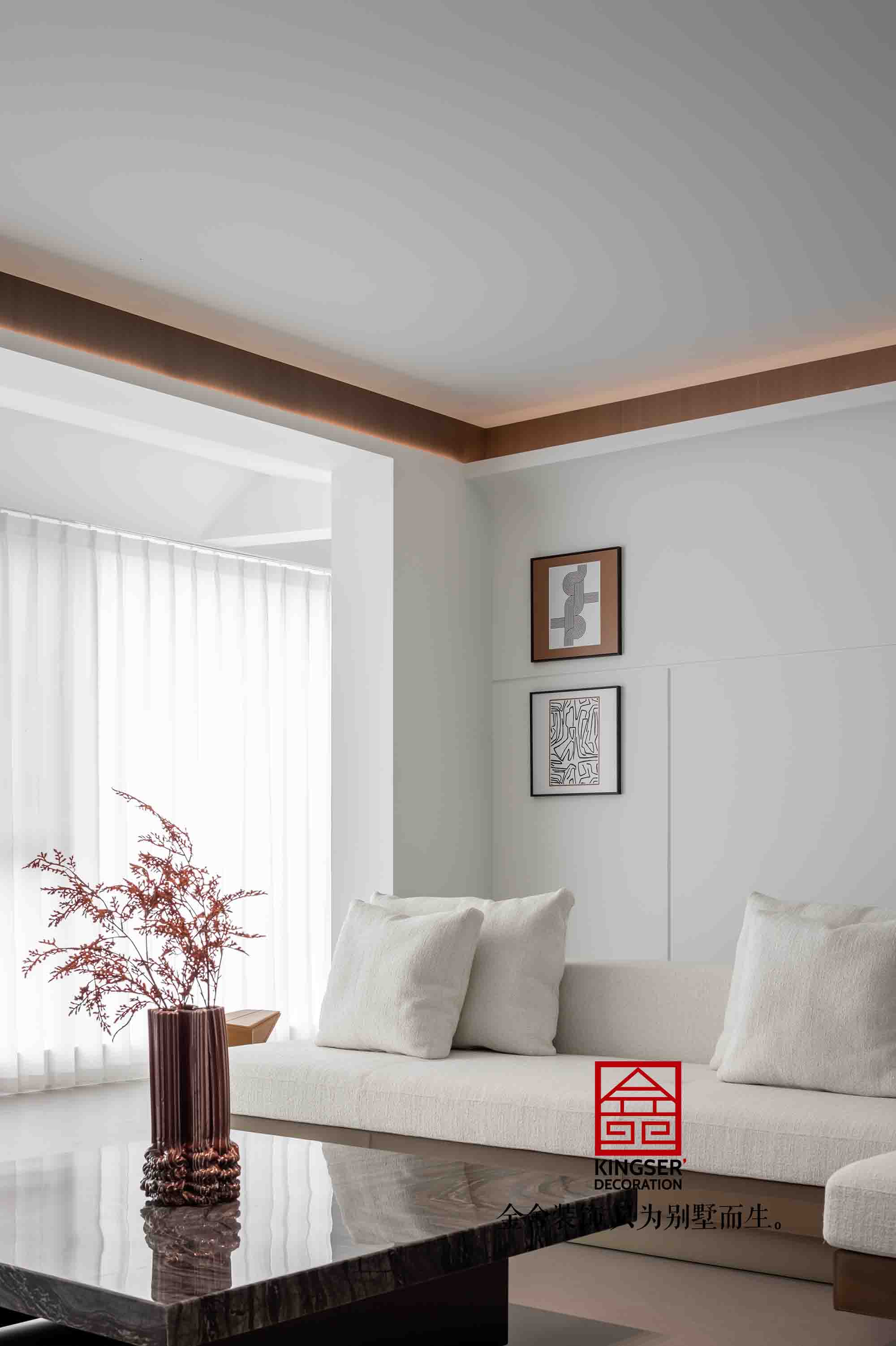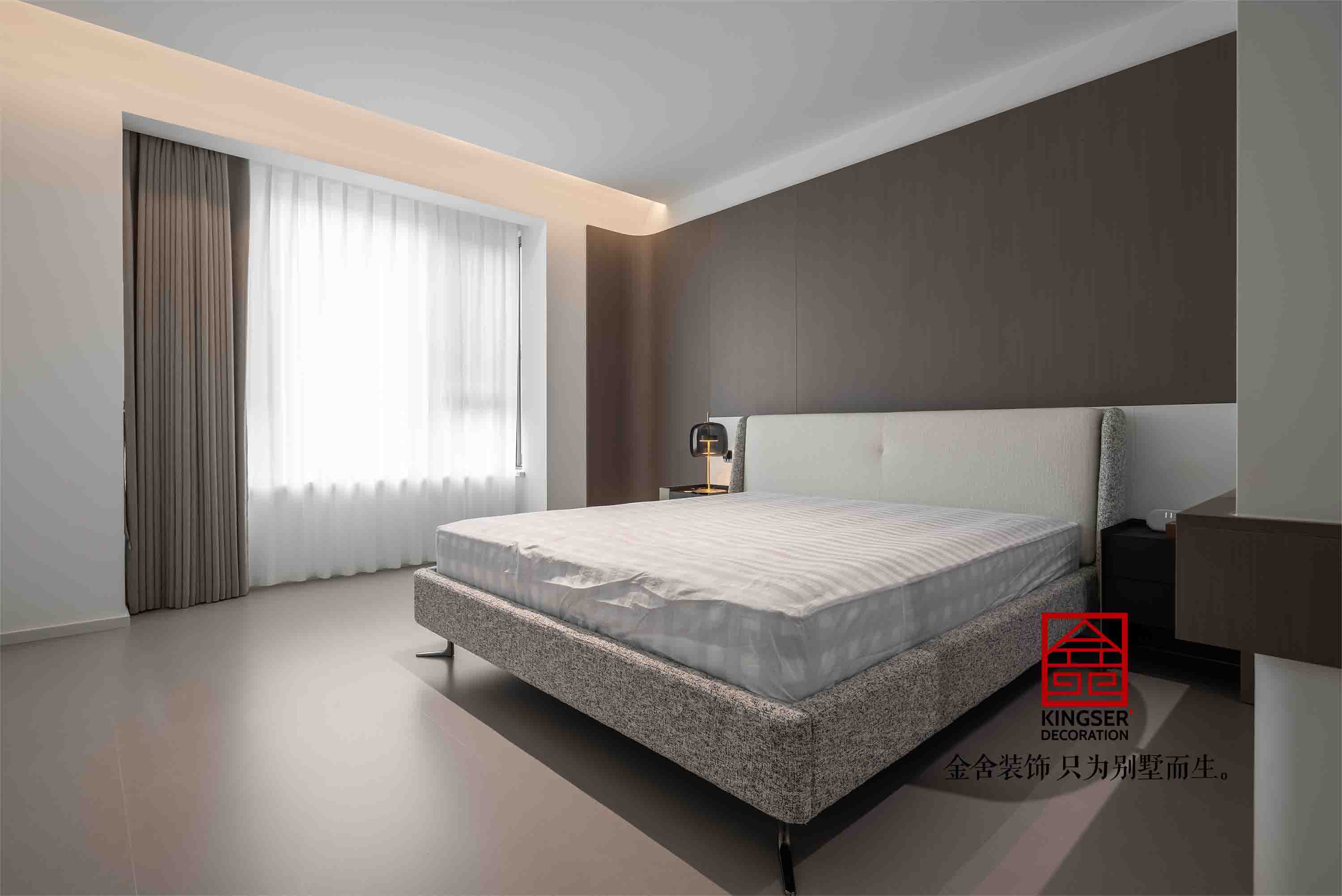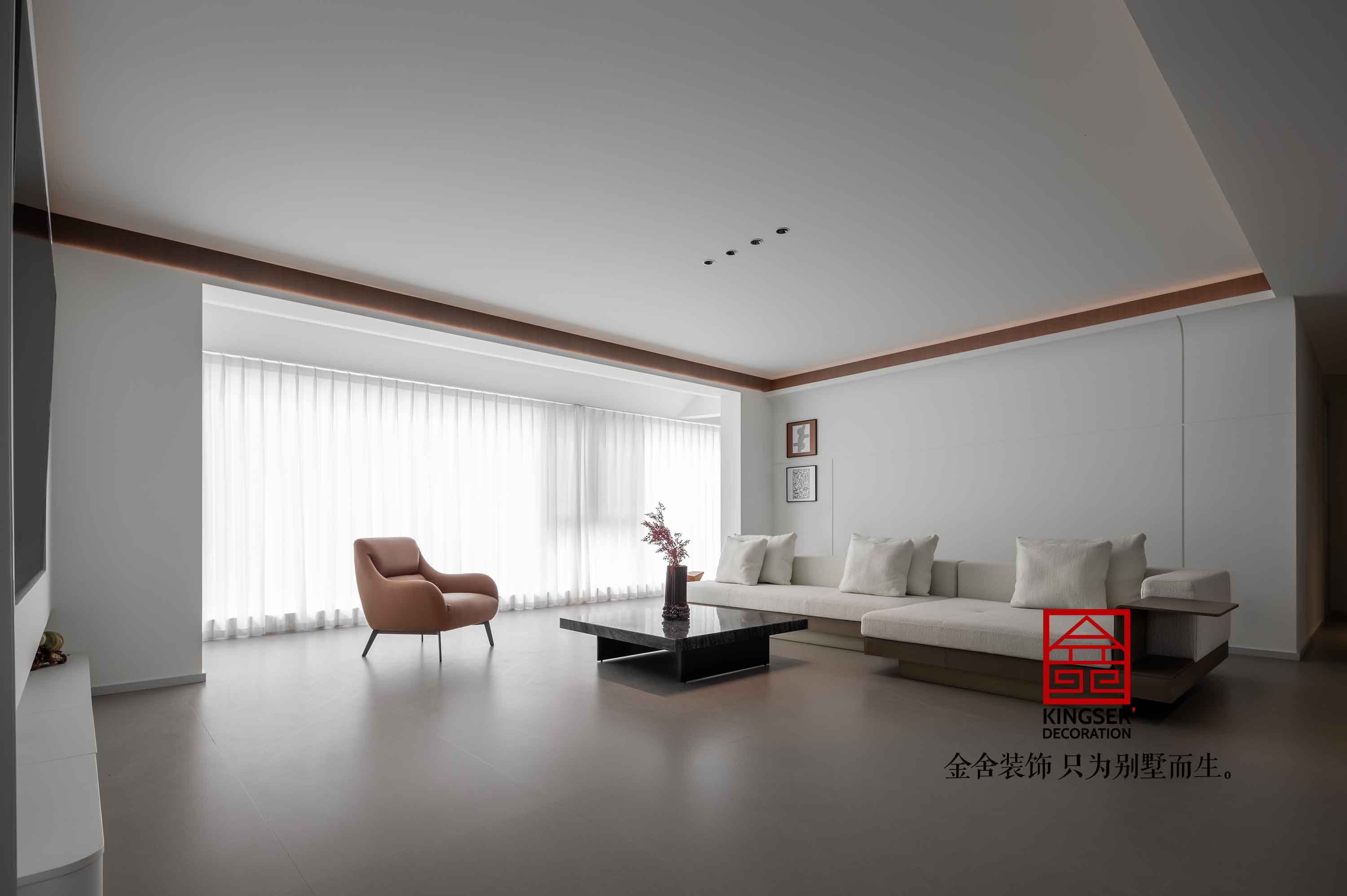 色彩搭配:整体运用米白、浅灰、深棕等中性色调,营造出宁静、舒适且有质感的氛围。白色墙面与天花板提亮空间,深棕木饰面增添温暖与沉稳。