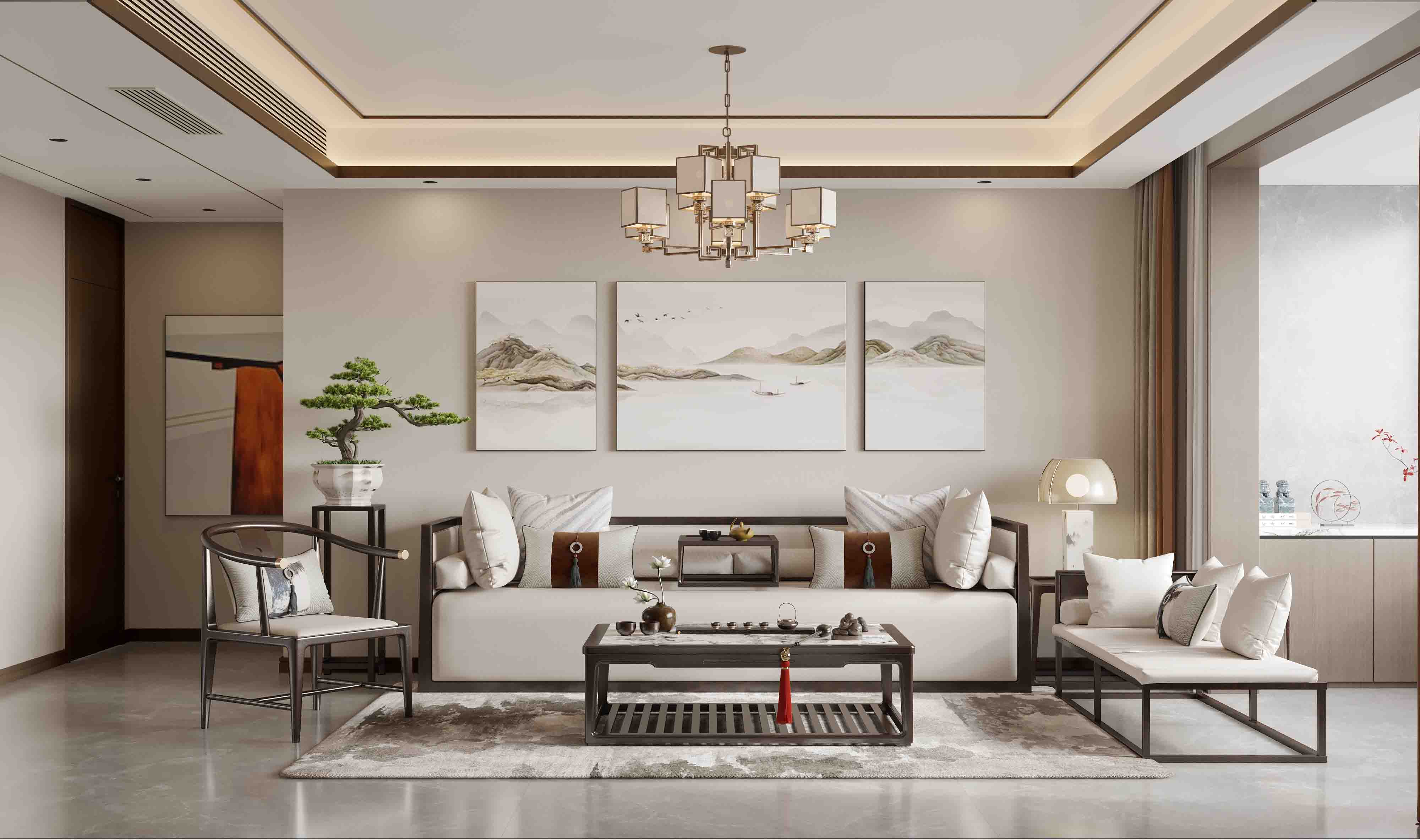 > 月亮湾130平米新中式轻奢风格装修效果图